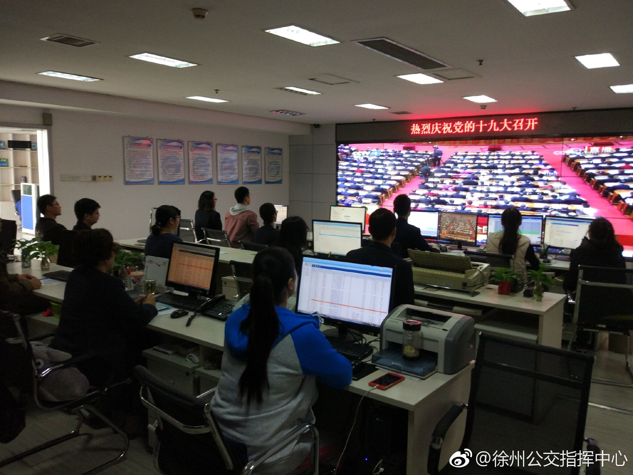 上午9點(diǎn),第十九次全國(guó)人民代表大會(huì)在雄壯激昂的國(guó)歌聲中拉開帷幕,公司機(jī)關(guān)、賈汪公司、中北公司、服務(wù)督導(dǎo)隊(duì)、智能調(diào)度中心等單位紛紛組織黨員、員工觀看了十九大開幕實(shí)況。